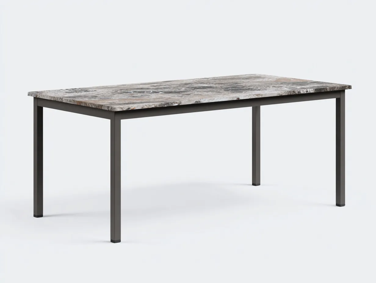 Mesa comedor exterior cerámica 180x90x75 cm - efecto mármol oscuro- estructura metálica resistente