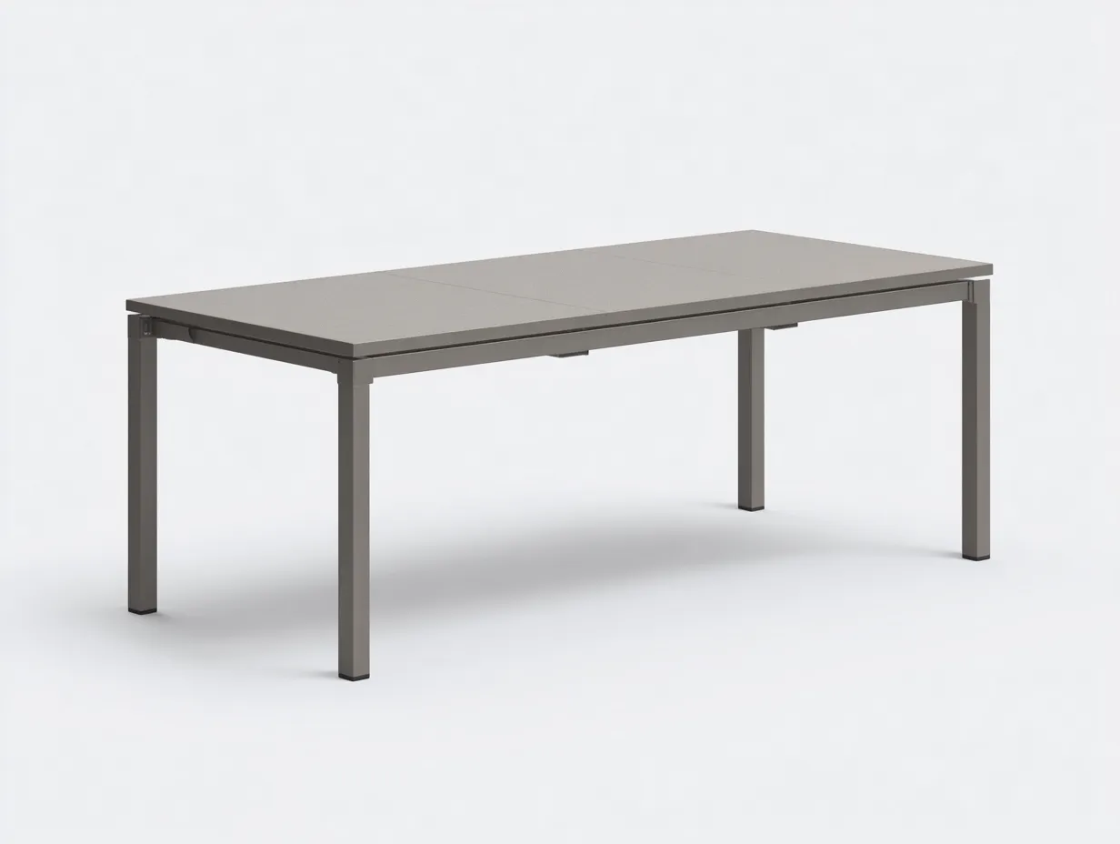 Esta mesa de comedor para exterior presenta un diseño minimalista y funcional, ideal para terrazas, jardines o balcones amplios. Su estructura recta y acabado en gris moderno aportan un estilo sobrio y contemporáneo que se adapta fácilmente a distintos ambientes exteriores.